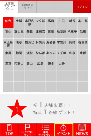 コンテンツ3 「各種イベント」 「全店舗スタンプラリー」 あなたが「レンタルレイアウトラリー」に参加した店 舗が記録されていきます。 たくさんの店舗で参加してください。 集めた店舗数によって「レンタルレイアウトラリー」 に登場する路線が追加されていきます。 |